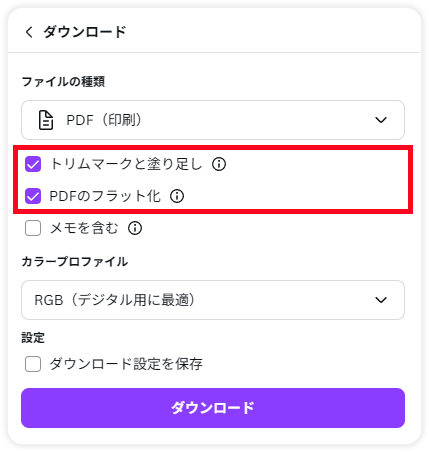 Canvaはデータをダウンロードする際にいくつかの設定をしなければいけません。